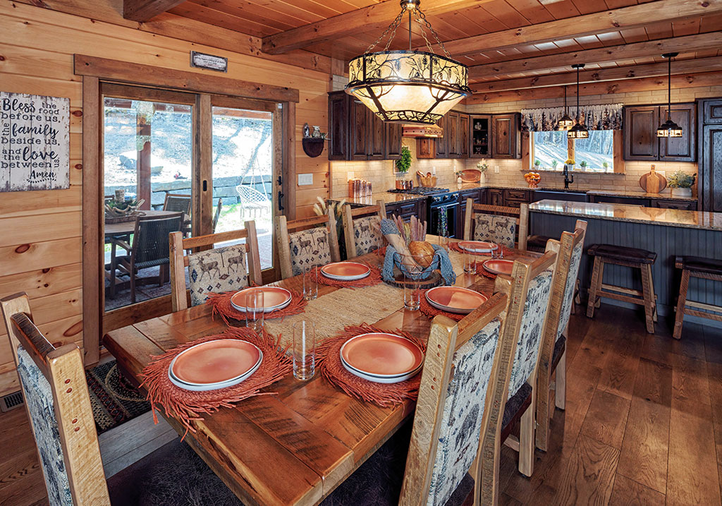 Black Bear Lodge’s owners have a growing family and wanted to incorporate plenty of room for entertaining, sleepovers and visitors. With just under 4,000 square feet of livingspace the home provides ample space and uses every square inch with purpose. The dining room is right off the eat in kitchen, allowing for extra seating at the island while still being able to be together family meals. The gourmet kitchen includes every amenity the home chef needs to feed a group. The living room is the perfect place for a party, or to sit by the fire.