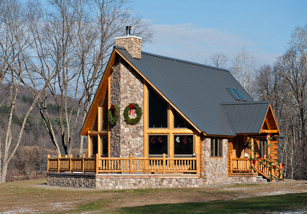 When Fred and Johnna purchased a property nestled high on a bluff in the Catskills, their plan was to remodel the old farmhouse that sat in the hollow. But when local builder Max Dutcher—who had worked with their son—visited the site, he offered them a different vision. Instead of putting time and money into a drafty old structure, Max handed them a brochure from Beaver Mountain Log & Cedar Homes and simply said, “Build on the bluff, and you can see for fifty miles.”