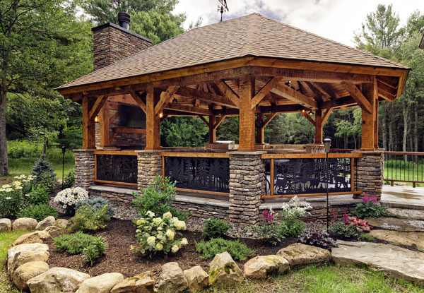 According to Kyle, it is vital to “always think about the future”. In the early stages of landscaping and hardscaping, be sure to be mindful of underground pipes and gas lines that you might need easy access to down the road. The same goes for septic tanks and wells. Avoid planting trees or large shrubs overtop of these. The same goes for hardscaping. Avoid placing patios, firepits, and outdoor kitchens too close to areas on your property that might need to be dug up if there were ever an issue. If you’re planning on future hardscaping such as putting a hot tub on a deck/porch, adding a pool or outdoor kitchen, mention that to your Beaver Mountain designer so they can work it into the home design. Future proofing your home will make it easier to add these things later on, and save you money.